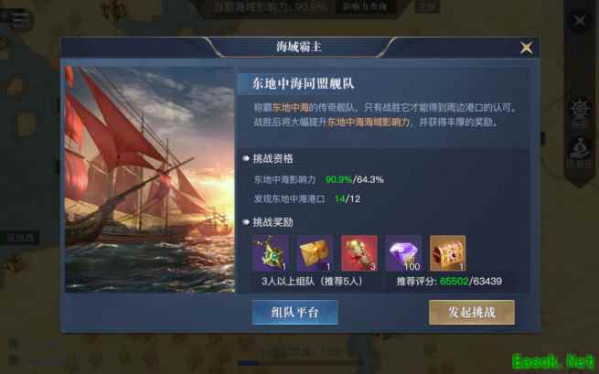 (3)击败海域霸主 难度系数:★★★★☆ 推荐指数:★★★☆☆ 击败海域霸主也是提升世界影响力的一个方式。每片海域中都有一个专属海域霸主,挑战后不仅可以获得大量珍稀资源,还可以快速提升我们在该海域的影响力。与之相同,挑战海域霸主的要求较高,我们要先登陆该海域的绝大多数港口,并提升在该海域的影响力后方可获得挑战资格;且击败海域霸主对我们的战力以及队伍阵容的要求也很高。大家可以根据自己的海域影响力以及战力来选择想要挑战的海域霸主。