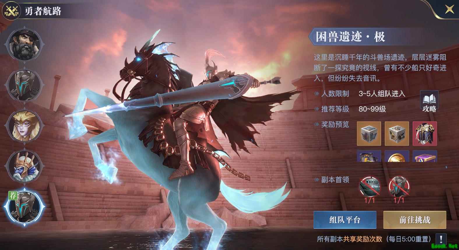 5.勇者航路·极 勇者航路·极的推荐挑战等级为80~99级,每日的极境副本均不相同,是原有四个副本的加强版本。击杀首领有几率获得:绿色品质船甲、绿色品质船炮、蓝色品质船甲、蓝色品质船炮、紫色品质船甲、紫色品质船炮、橙色品质船甲、橙色品质船炮、80级绿色品质装备、80级蓝色品质装备、80级紫色品质装备、80级橙色品质装备、史诗装备设计图、80级装备币及卓越魂石。