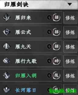 《下一站江湖2》归雁剑诀一览:归雁剑诀是剑术流派的入门武学,以外攻伤害为主,共有3个招式、1个功体和2个秘技。