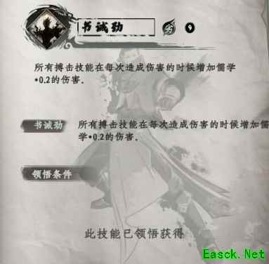 《下一站江湖2》书诫劲一览:书诫劲 书诫劲是将儒家与搏击融会贯通的护体技,可以显著提升搏击招式的伤害。