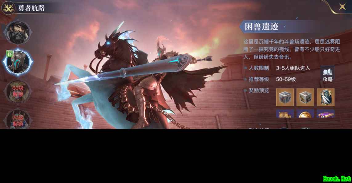 并且每天可以求助两次,帮助其他人也是可以获得奖励的,每天最多三次。当然在当你物资不足的时也可以向其他的成员求助,每日最多求助两次。 虽然任务奖励十分丰厚,但对于前期无法集齐交货道具的航海家来说,并不建议强行去完成。当我们自建港工坊二级后,可自己制作以上道具的情况下可酌情做该任务。 2、勇者航路 开启等级:34级 推荐指数:★★★★☆ 可做次数:1次 组队任务(人数3~5人,推荐组满) 推荐战力足够通关的玩家尽量打过,实在无法通关可提升后第二日再打 勇者航路中包含四大副本,分别为34级燃烧港湾、50级困兽遗迹、60级战栗仙境、70级冰海领主。打完普通难度后可解锁困难,获得的奖励与等级和副本难度挂钩,副本完成后可获得大量经验值、船装、套装、装备设计图、魂石、装备碎片以及10活跃度。