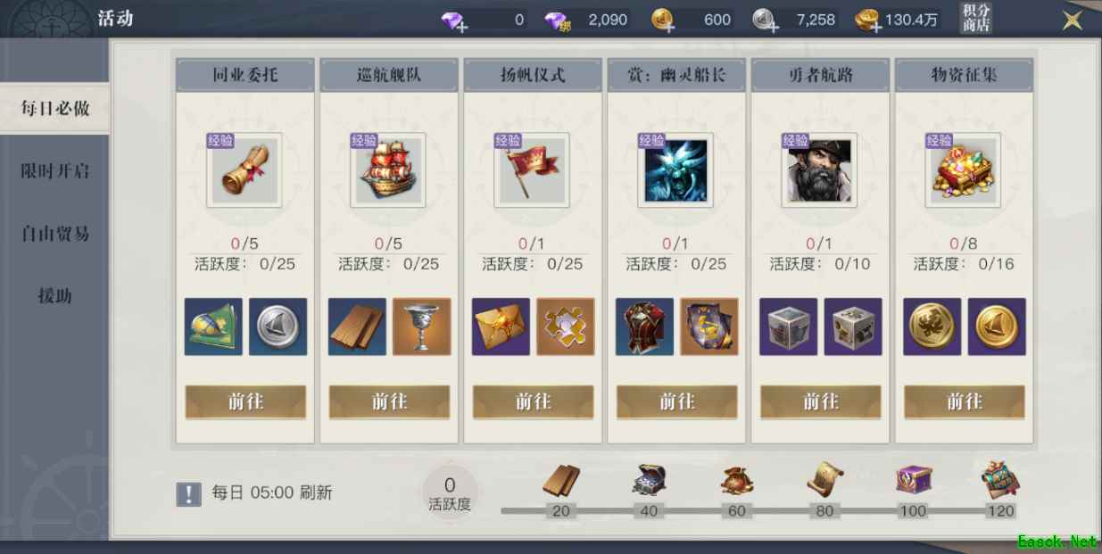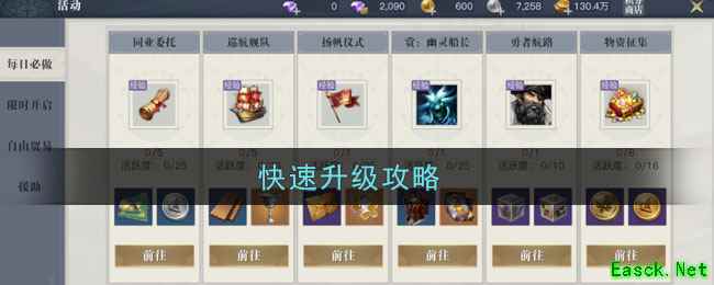 活动里每日可获得经验值的包括 :“同业委托”、“巡航舰队”、“扬帆仪式”等日常活动,我们一起看看哪些是升级一定要完成的吧!