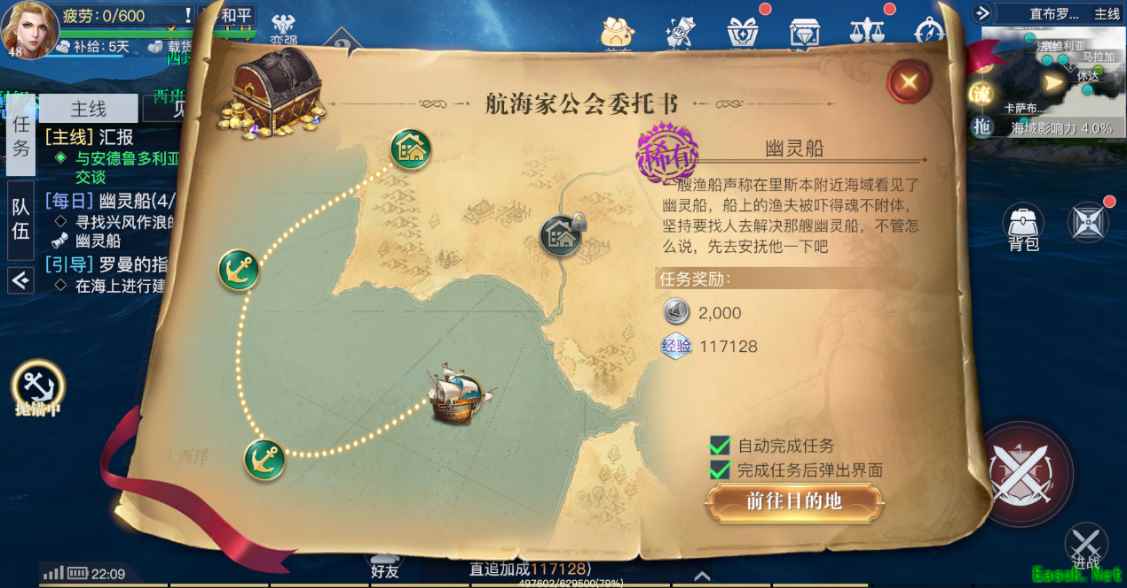 当我们组好队伍后,可根据引导前往任务海域,击败海盗团或是怪物副本即可获得奖励。获取的经验值奖励同样是按照完成次数逐级递增,建议将五次任务全部完成。
