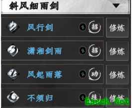 《下一站江湖2》斜风细雨剑招式一览:斜风细雨剑相传是由一位剑痴所创,被云潇山庄收集在庄内,以外攻伤害为主,共有2个招式、1个功体和1个秘技。