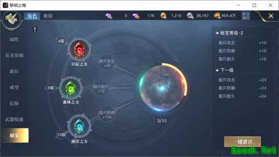 | 《黎明之海》中看似玩法纷繁错杂,但细分下来,玩家主要的养成对象只有两个,其一是玩家的角色,其二是玩家的舰队。而本篇攻略就是对玩家角色培养的大全,将其各种养成玩法统一整理,让玩家能清晰了解如何让自己的角色变强。 前言 特别提醒,角色的养成是一个长期工程,很难速成,但很多可研究、提升的东西。同时,角色的许多养成玩法,同时也会对船只的属性有所加成,二者是一体的。 在装备、职业、技能、魂石、爵位、威望、信仰、秘宝等多种养成玩法中,由于装备、魂石与职业、技能的内容较多,已经分为了单独的两篇攻略。而本篇攻略主要针对其他的玩法。