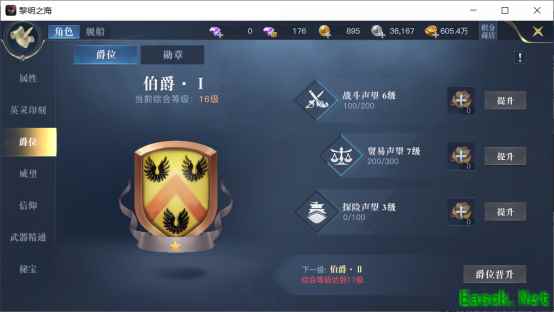 爵位的提升非常考验玩家的综合能力,战斗声望要通过单人挑战的征服者试炼获得,贸易声望则要通过投资商店用贸易币购买,探险声望则要探索地图才能获得 可以说,大部分时候看玩家的爵位高低是评估其实力最直观的方式。 2、威望与威望勋章