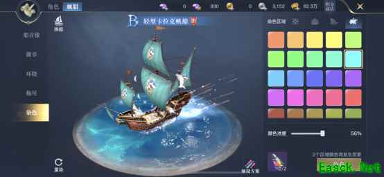 至于拖尾可以选择玩套路,比如似水年华,在船尾显露绿色光芒,给人一种不断治疗的错觉。在游戏的对战里,万一敌人不知道这个是拖尾,来对你进行针对,可就上当了。另外还有天谕流星、炼狱之炎等,非常霸气的拖尾可以进行选择。最后来说说舰船染色,可以针对舰船不同的部位进行染色,比如船帆,众多颜色、颜色的浓度都可以由自己选择,可调整性极高。