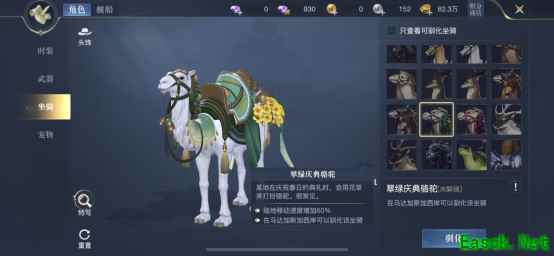 坐骑可选的种类还是非常丰富的,各式各样的马匹、骆驼、白鹿和海洋生物等等。这些坐骑不仅是外观好看,还会给角色增加一定的属性,比如翠绿庆典骆驼,获取后可以增加陆地60%的移动速度,大幅度节约玩家陆地做任务的时间。那么就有小伙伴想问,这些坐骑获取是否要花钻石?并不是,我们可以通过提升探险的驯化技能,达到不同的等级,就可以驯服对应的坐骑了,想要拥有这些高颜值坐骑,抓紧做任务吧。