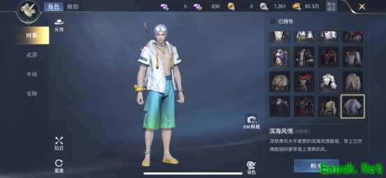 【角色时装搭配,焕然一新】 角色的装饰可以从时装、武器、宠物和坐骑方面着手,先来了解一下时装。时装是角色外面穿戴的服饰,所谓人靠衣装,马靠鞍,不管捏脸多好看,都需要用外观来进行搭配。比如【黑帆】时装,独眼海盗的风格,画面感满满,获取也比较容易,游戏公测时官网预约即可获得。还有【滨海风情】时装,凉爽的夏日风,驾驶着船只航行在海上,享受清爽的风。获取方面,可以从钓鱼商店中直接购买。