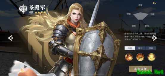 【团队壁垒—圣殿军】 通过圣殿军的能力分布图可以了解到,圣殿军注重生存能力,是一个坦克型职业。次级注重控制能力,可以吸引敌人大量火力。 圣殿军技能有【肉盾】、【输出】和【控场】三套可选,可应对各种环境下的战斗。例如在PVE打本时,组队状态下,选【肉盾】系列的技能,使用嘲讽敌人吸引火力,同时开启【近卫姿态】来降低自身承受的伤害。单人状态下,选【输出】系列技能组合,由于自身坦克的定位,抗伤自然不在话下。再搭配【输出】系列的技能,也可以打出不俗的伤害。而在PVP对战里,自然选【控场】系列技能。【圣力结界】的沉默与晕眩,搭配【圣力澎湃】和【无畏冲锋】技能,打伤害的同时,降低治疗效果,将对方的奶妈的作用将至最低。