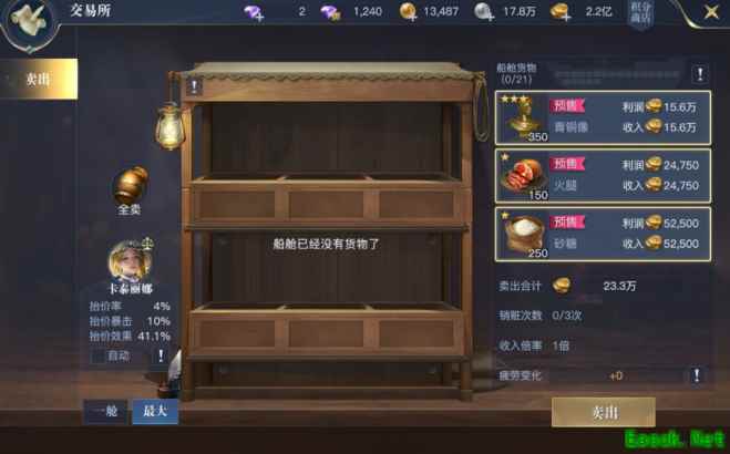 在得到货物后,我们可以前往黑旗港口进行出售并获取高额利润,每次岛销赃后还可以获得100点威名。每天可以进行三次销赃,且在黑旗港口进行贸易不增加疲劳值,建议大家在闲暇时间开启黑棋模式击杀商船并进行黑旗贸易,获取更多的贸易币。