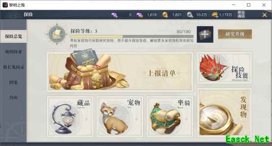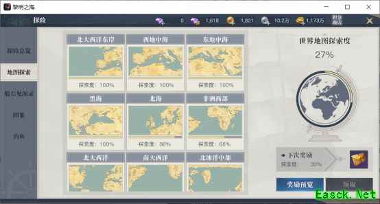 《黎明之海》的一大卖点就是真实世界环球冒险,而为了鼓励玩家多多探索世界,游戏中专门有一个探险玩法,资源奖励非常丰厚。不过,想要完全探索世界是一个比较长期的工程,希望能通过本篇指南让玩家轻松一点。 一、探险玩法介绍 犹如其名,探险玩法就是在各处探险,从而获得各种奖励,绑钻、装备、银币、航海士等等,其中还有专用货币探险币,用来兑换各种外观奖励。 虽然主线剧情上对玩家的探险进度没有要求,但探险玩法的资源价值是非常高的,特别是对于平民玩家,请有时间一定要刷一下。