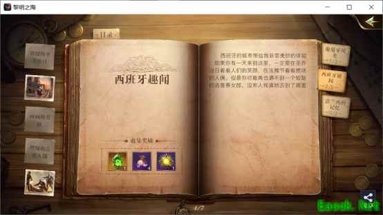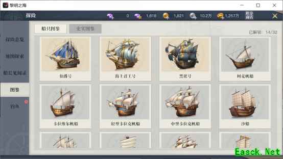 5、图鉴 图鉴,分为船只图鉴和史实图鉴,每次解锁给一定绑钻。 最简单的探险玩法,前者只要每次解锁新船的时候,造一艘就行了。后者则是跟着主线剧情就能解锁的。