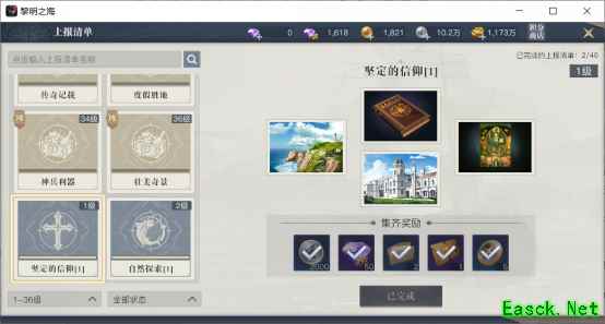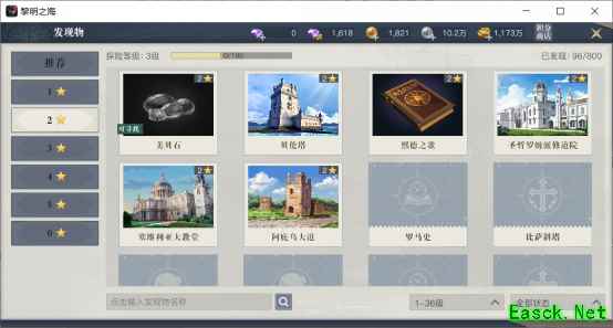 2、发现物与上交清单 这是探险玩法中,奖励最丰富的玩法。 玩家可以通过收集发现物,并将其组成一个清单,上交给在塞维利亚的收藏家NPC,就能获得大量绑钻、银币、研究点数、皇家邀请函、探险币。
