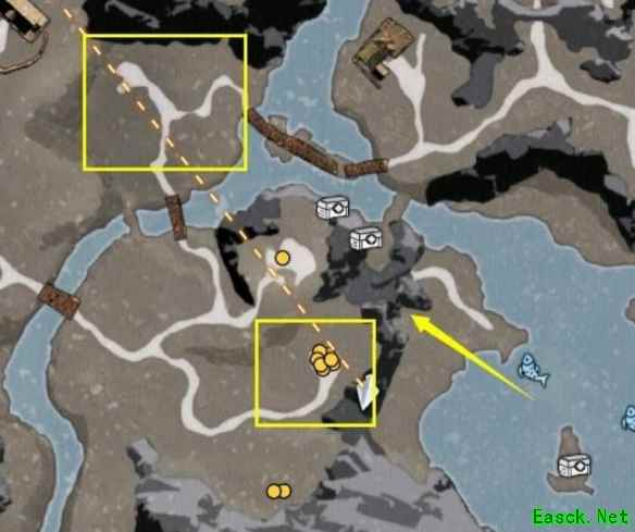 2. 然后玩家去上边下图两个方框的位置决斗两个门派的掌门,拿到两个钥匙之后到箭头上方开门。