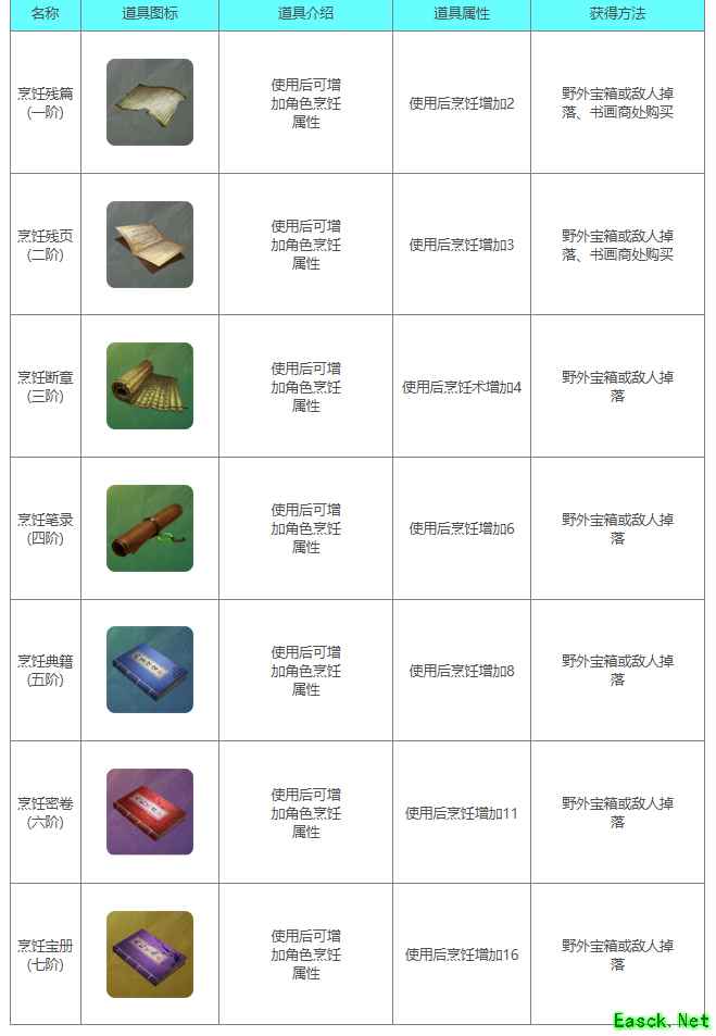 《下一站江湖2》烹饪系列书籍一览:烹饪系列书籍一共有7册,从烹饪残篇直到烹饪宝册,详细如下所示。