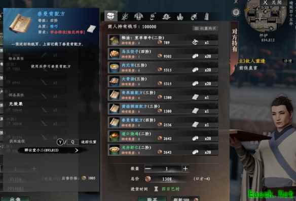 《下一站江湖2》春曼青配方获取攻略:玩家可以在枰栌(893,812)醉云堂小二处购买到春曼青配方。