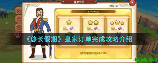 在悠长假期手游中皇家订单怎么完成呢?游戏中获取金币的方式有很多,前期游戏金币消耗不大,种地和钓鱼就可以了,后期就不太行了,完成皇家订单就可以获取大量金币,那么想知道皇家订单完成攻略的就跟随小编一起来看看吧。