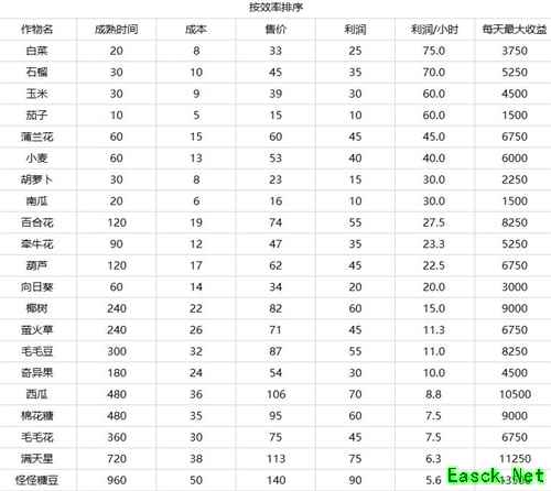 《摩尔庄园》手游农作物收益一览