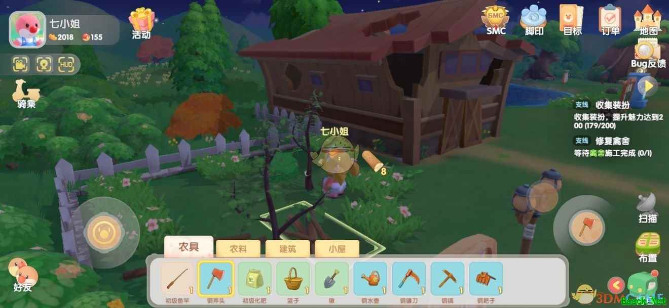 《摩尔庄园》手游红木获取方法介绍1、玩家在游戏中选择工具,前往梅森之屋升级即可砍出红木。