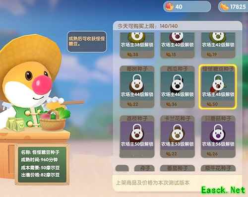 这个怪怪糖豆是玩家可以得到种子然后来种植得到,只不过需要等级比较高,需要玩家的农场主等级达到48级才可以解锁。