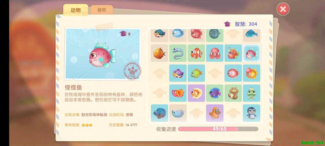 怪怪鱼描述: 在牧场海中意外发现的特有鱼种,颜色艳丽却非常狡猾。想钓到它可不容易哦。