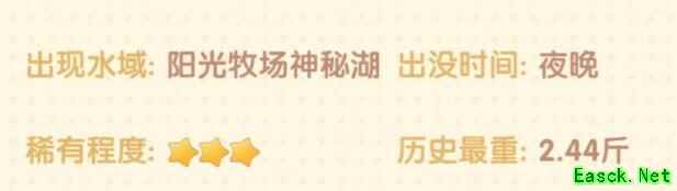 《摩尔庄园手游》怪怪鱼位置介绍怪怪鱼位置:阳光牧场神秘湖 出没时间:夜晚 稀有度:3星 历史最重:2.44斤