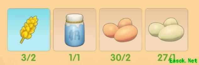 食谱配方:小麦x2、牛奶x1、鸡蛋x2、鸭蛋x1; 稀有度:3星