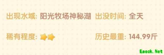 《摩尔庄园手游》魟鱼位置介绍魟鱼位置:阳光牧场神秘湖 出没时间:全天 稀有度:2星 历史最重:144.9斤