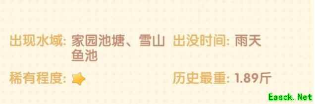 《摩尔庄园手游》红鳞鱼位置介绍红鳞鱼位置:家园池塘、雪山鱼池 出没时间:雨天 稀有度:1星 历史最重:1.89斤