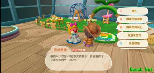 四、彩虹姐姐人物档案 1、彩虹姐姐是一家宠物店的店长,去店里可以买到拉姆的衣服和道具,还可以玩泡泡龙游戏。