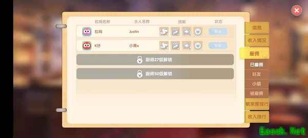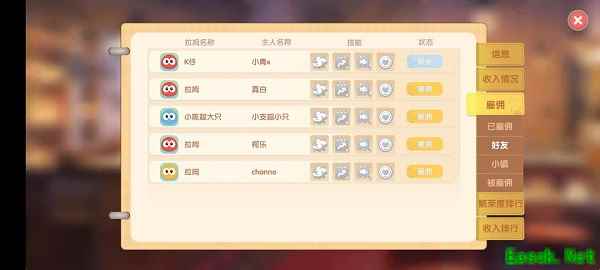 目前最多可以雇佣4个小拉姆作为店员帮我们经营餐厅,名额需要厨师等级解锁。