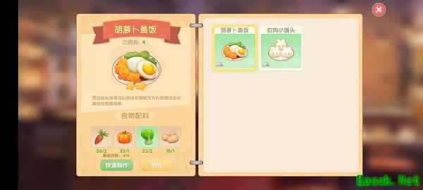 在开业之前我们需要准备好今天要卖的食物,烹饪的时候可以看到一次准备的数量和今日的流行菜;出售流行菜可以获得更多的摩尔豆。