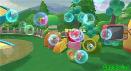 派对广场就是NPC琦琦的所在地,里面充满了各种各样的小彩蛋。比如触摸这个绿色的泡泡机,机会持续五秒吹出泡泡。广场中的小木马、摇摇车、大西瓜都可以触发小彩蛋哦! 弗礼德的游戏小屋——摩尔快乐屋