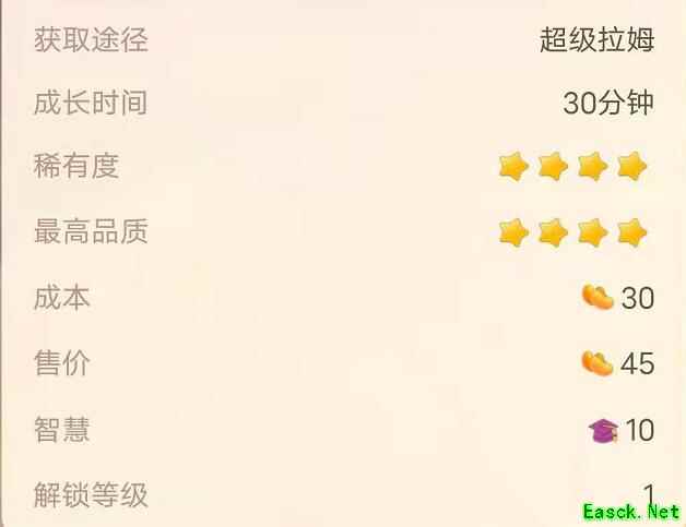 种子成本:30 花婶售价:45 采摘所需爱心:12