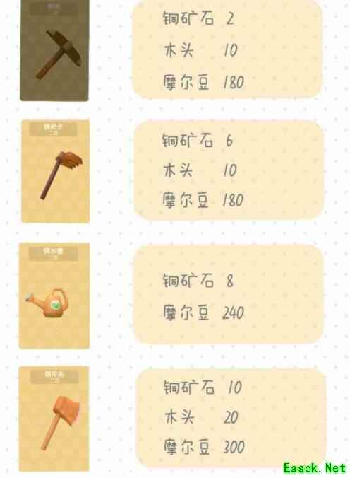 《摩尔庄园》铜工具升级材料一览