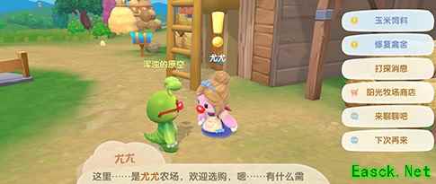 这个需要玩家去找这个做尤尤的支线任务才行呢,需要你来到这个阳光牧场,然后在这个尤尤农场里面,可以在房子的外面,看到这个尤尤。