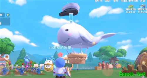 首先白鲸可以在NPC【大力】那里兑换白鲸喷泉气球道具,大力就位于【爱心广场】警署的旁边,他的帽子是一个美元符号,然后旁边有一辆跑车,老摩尔习惯称他为“神秘商人”。