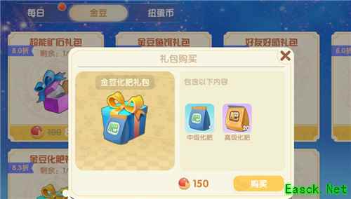 最后就能用150金豆购买【20包高级化肥+5包中级化肥】了,相当于15块钱;