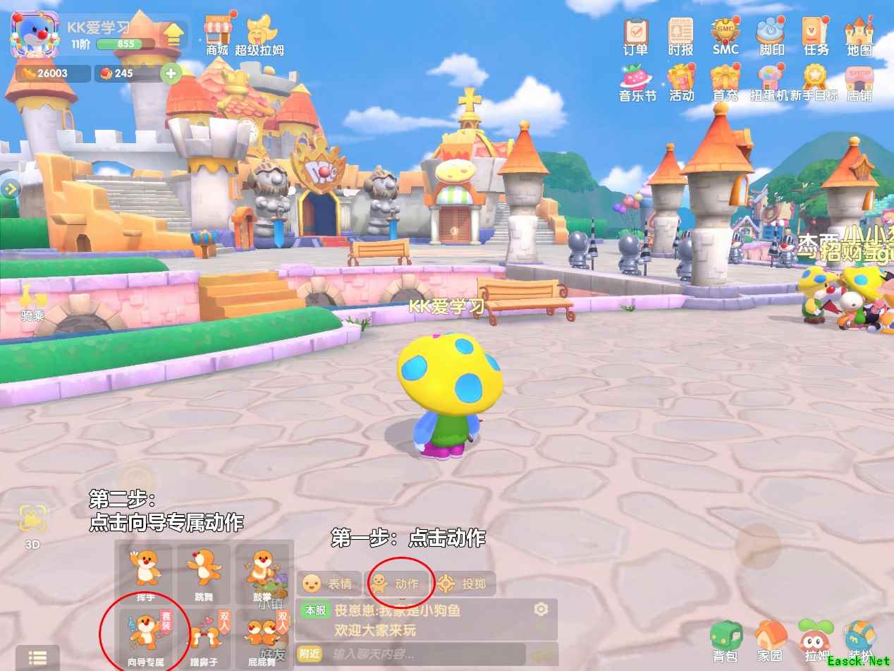 然后到达指定地点,打开动作界面,里面会有一个向导专属动作,点击便可以进行向导的宣传工作啦!