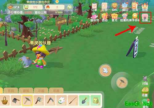 1、在主界面的右上角点击“店铺”,然后在梅森种子商店的“工具”里面。