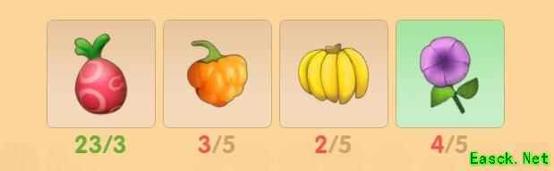 食谱配方:红色浆果*3、橙色浆果*5、香蕉*5、牵牛花