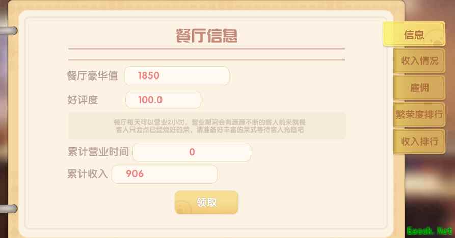 大家在经营餐厅时可以使用高级装饰提高繁荣度,并且做菜的时候看一下当日流行菜,多做一些可能评分。