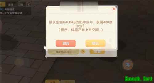 最后会弹出系统提示窗口,点击【确认】按钮就能把牛给卖掉了,480摩尔豆一头。