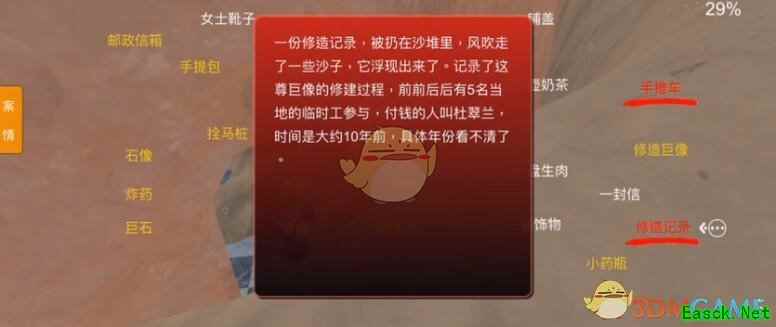 修造记录:如下图,在沙堆里,这个找到了【手推车】就很容易看到了!