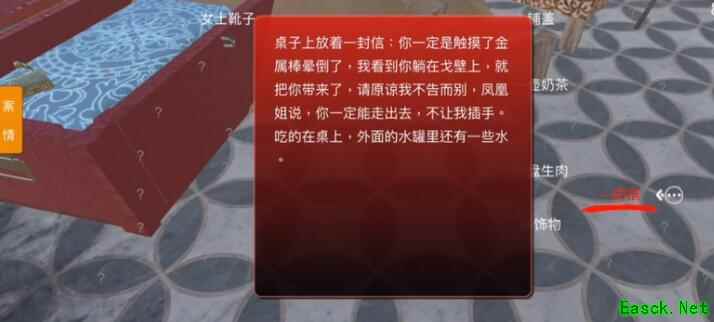 一封信:这个线索很好找,就在游戏开始触摸了金属棒后醒来看到的桌子上,如下图: