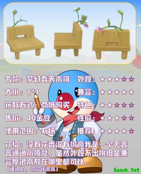 以上就是《摩尔庄园手游》梦幻春天木椅介绍,更多游戏攻略请持续关注易采游戏网!