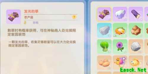 1、在家园割草的时候,玩家有一定的概率可以得到发光的草。