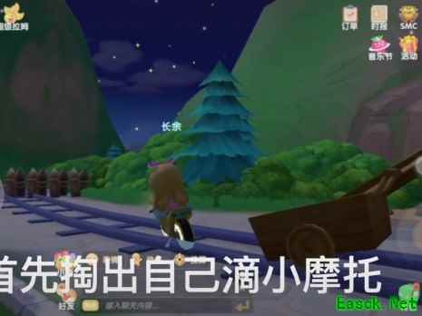 2、然后掏出自己的摩托车,汤米旁边这是有个草丛,,直接上去。