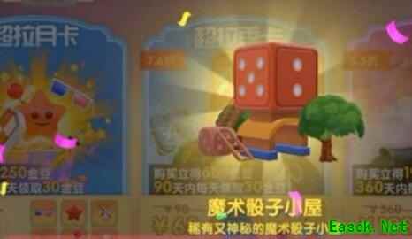 68元购买超拉季卡,里面不仅有月卡里面的六个专属道具,还会再多赠送玩家四个专属道具:魔术骰子小屋,溜溜鞋,还有隐身衣以及泡泡圈,这些道具都是非常好用的!